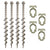 This premium camping screw-in peg set includes four large 30cm alloy pegs and four durable guy rope clips, designed to provide a secure and stable setup for gazebos, awnings, tents, and tie-down kits.