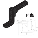 TAG Adjustable Tow Ball Mount - 297mm Long 90 degree Face 50mm Square Hitch